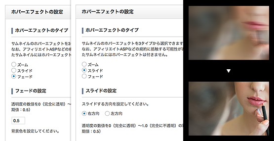 ここも細かな動きが非常に気持ちよく、次々見たくなるイメージギャラリーが作れます。