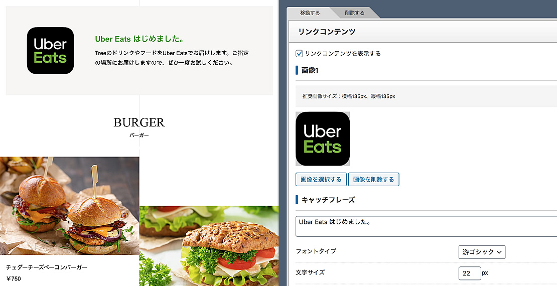このwordpressテーマでは、デリバリーへ誘導する固定ページテンプレートも搭載しています。